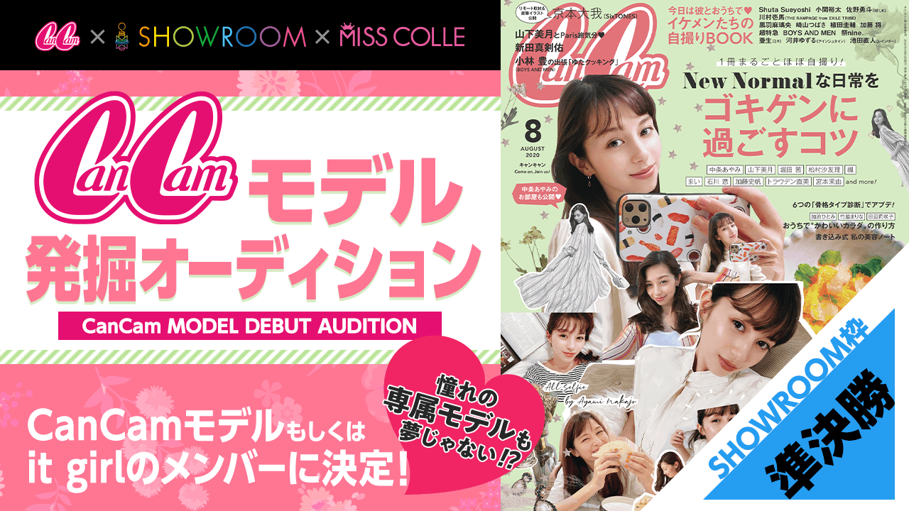 - SHOWROOMイベント『CanCamモデル発掘オーディション』の8/9(日)22:00時点で貢献上位10名以内の方